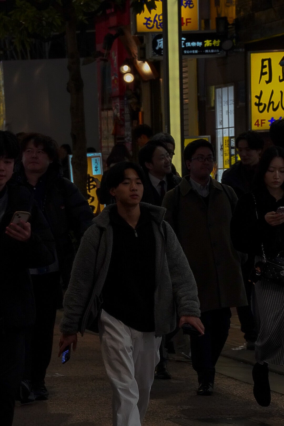 Skyscrapers rise just meters away from crowded streets, where people, trams, and traffic move in perfect chaos.